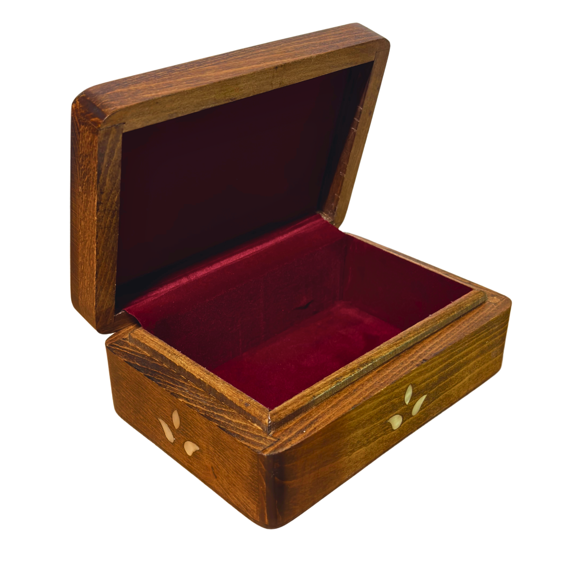 Elle est réalisée avec une finition en noyer foncé, de la nacre authentique et un velours bordeaux, révélant un savoir-faire syrien remarquable.